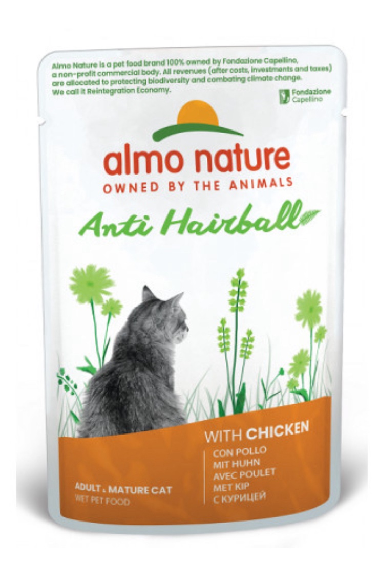 Le ricette Anti Hairball di Almo Nature sono composte da carne o da pesce e dai loro derivati, rigorosamente controllati. Bocconcini cucinati in salsa, completamente naturali senza coloranti o conservanti chimici integrati con minerali e vitamine e con un ridotto apporto calorico.