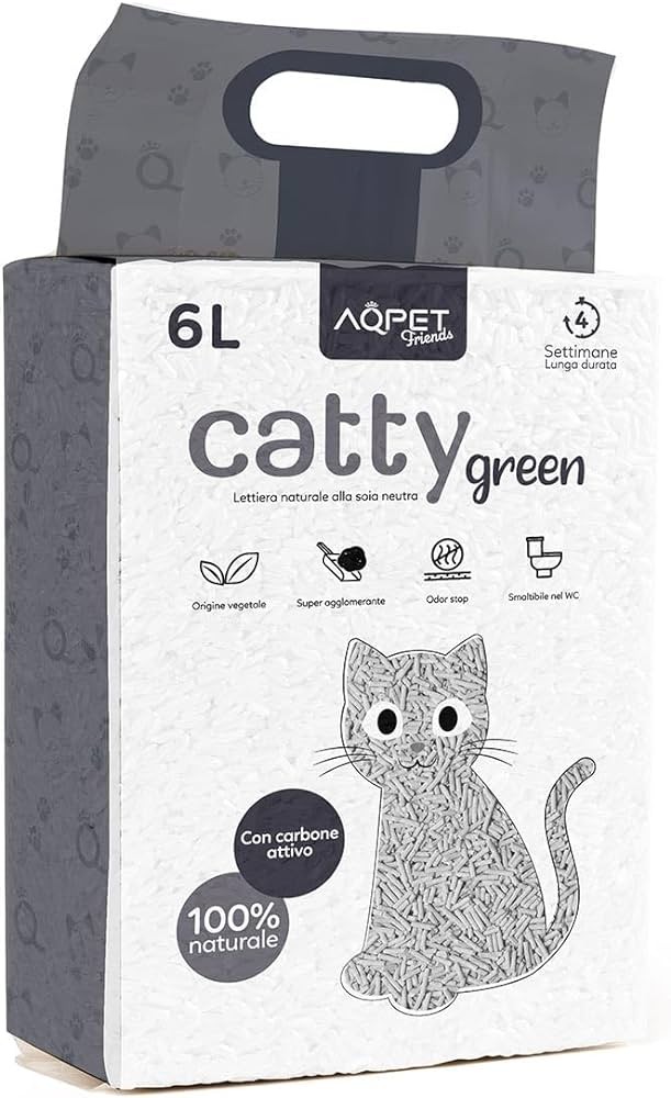 AqpetFriends Catty Green Lettiera naturale alla soia neutra Carbone attivo 6 Lt