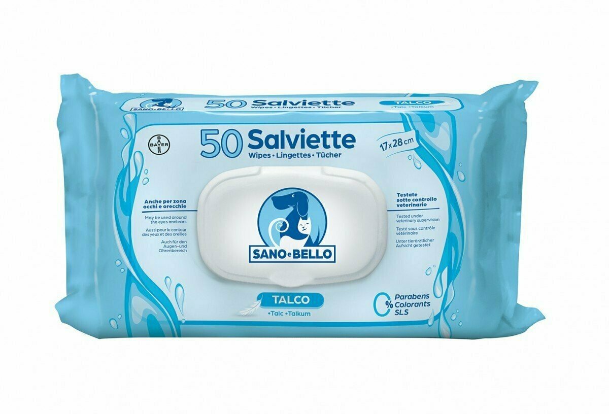 Le salviette Sano e Bello sono state sviluppate per la pulizia ed igiene senz’acqua di cani, gatti e cuccioli. Detergono, profumano e rendono lucente il manto. Sono utili in vari situazioni quotidiane come gite all’ aperto o in caso di pioggia.