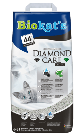 Il carbone attivo contenuto nella lettiera Biokat’s Diamond Care contrasta efficacemente i cattivi odori. Ecco perché i granelli neri sono veri e propri “diamanti”.