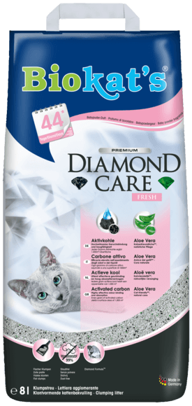 Il carbone attivo contenuto nella lettiera Biokat’s Diamond Care contrasta efficacemente i cattivi odori. Ecco perché i granelli neri sono veri e propri “diamanti”.