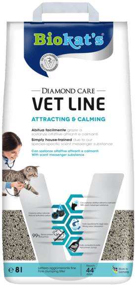 Per queste situazioni, che spesso influenzano i gatti particolarmente sensibili, adesso c’è VET LINE Diamond Care Attracting & Calming.