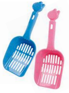 Paletta igienica per lettiere in plastica colorata azzurro o rosa.