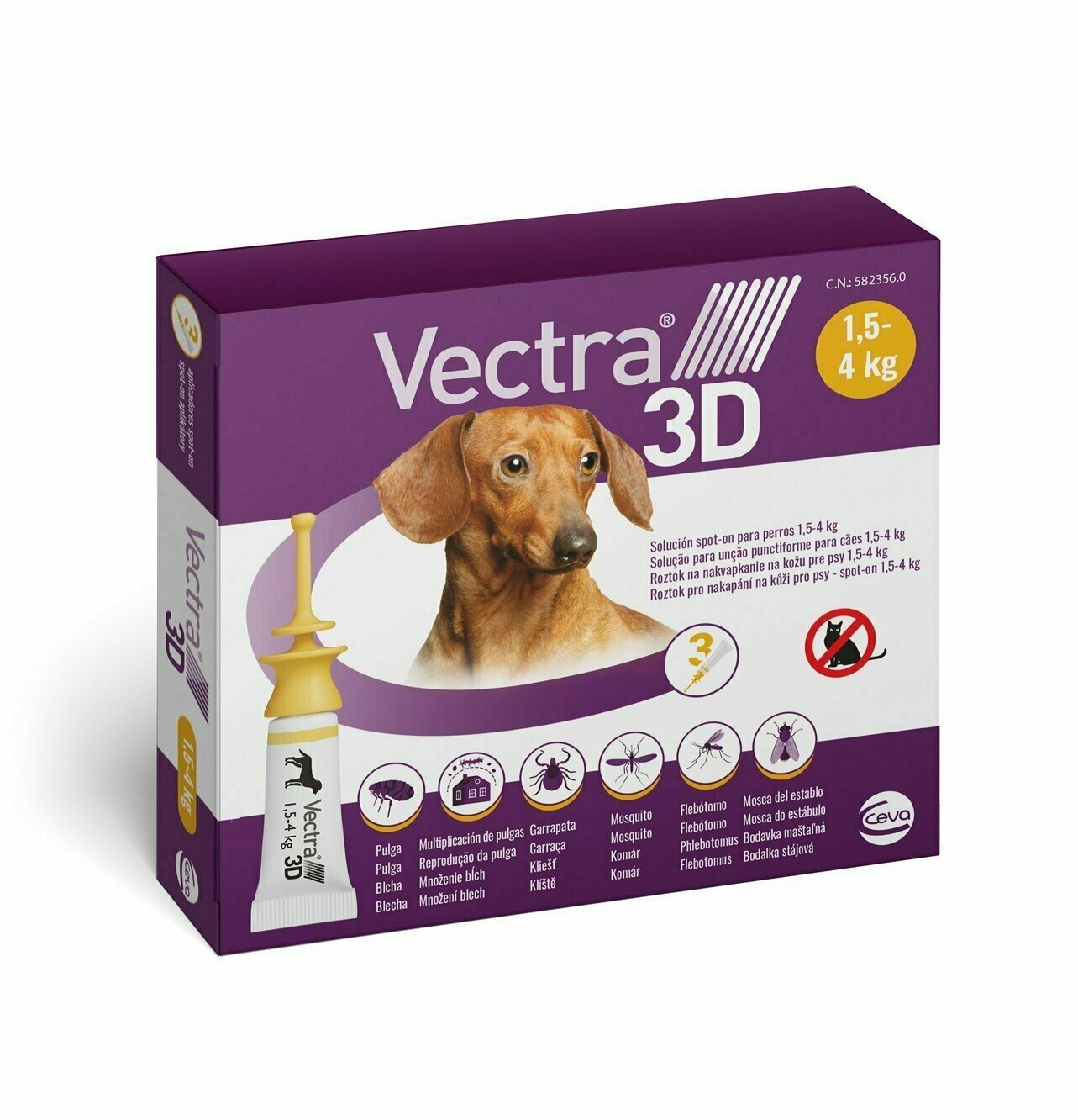 Ceva Salute Animale – Vectra 3D Soluzione spot-on per cani da 1,5 – 4 KG (3 pipette)