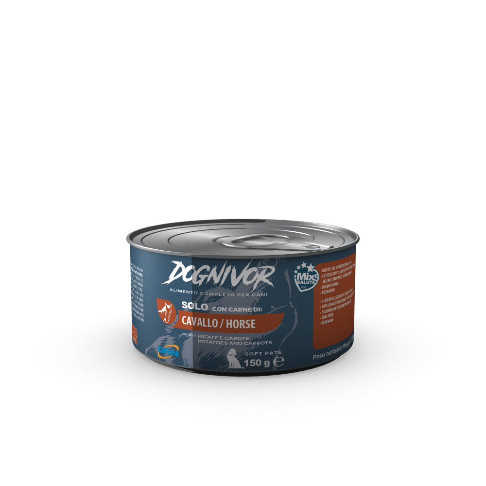 Composizione: carne di cavallo 88%, patate 4%, carote 2%