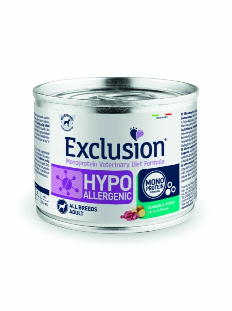 Caratteristiche: Exclusion Diet Hypoallergenic Venison and Potato All Breeds è un alimento completo dietetico per cani adulti formulato per la riduzione di intolleranze a ingredienti e a sostanze nutritive. Questo alimento completo dietetico possiede fonti selezionate di proteine e carboidrati.
