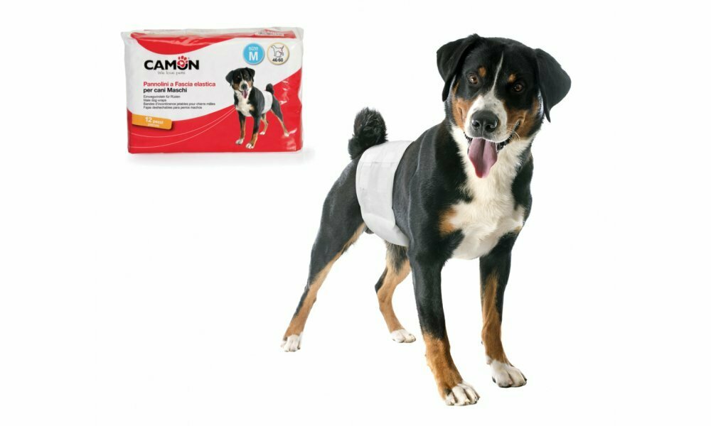 Fascia Igienica Elastica per cani maschi Taglia M – 46/60 cm -12 Pz