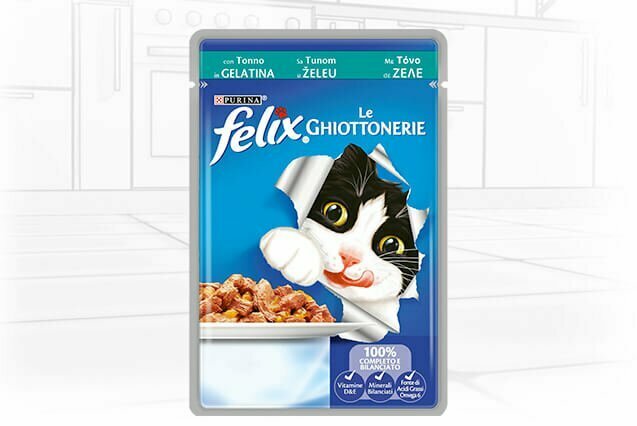 Con Felix Le Ghiottonerie puoi scegliere tra una vasta gamma di ricette con carni o pesci per sorprenderlo ogni giorno con un gusto sempre diverso: è una gamma di ricette irresistibili dall’aspetto, dal profumo e dal gusto così deliziosi, che ti sembrerà di averle cucinate con le tue mani. Ogni ricetta è preparata con teneri bocconcini in una succulenta gelatina per offrire al tuo gatto un pasto irresistibile.