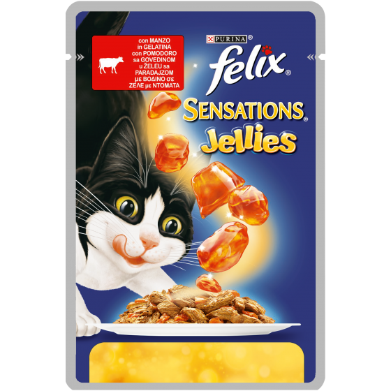 Felix Sensations è una gamma di gustose ricette preparate con teneri pezzettini di carni avvolti in deliziose e succulente gelatine, dall’ aspetto, dall’ aroma e dal gusto così straordinari che il tuo gatto non saprà resistervi.