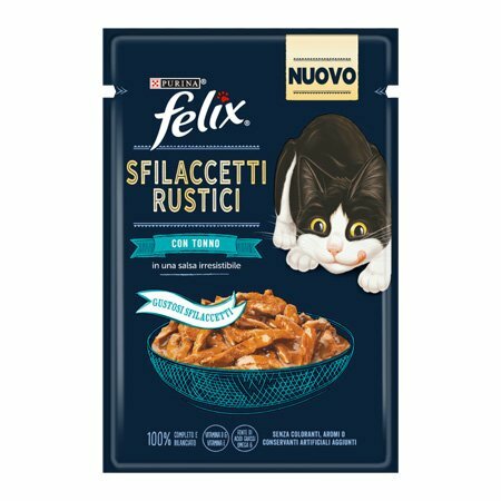 Purina Felix sfilaccetti rustici è un prodotto con teneri sfilaccetti in una gustosa salsa che il tuo gatto adorerà, hanno un aspetto, profumo e gusto irresistibile e sono preparati con la stessa cura che useresti tu, il tutto preparato senza l’ aggiunta di coloranti, conservanti e senza aromi artificiali aggiunti.