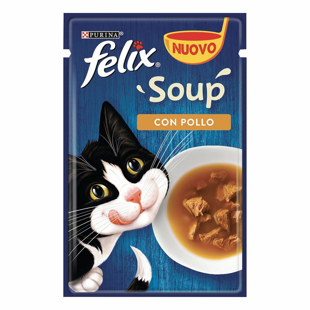 Felix Soup è una gamma di ricette irresistibili per il tuo gatto. Il tuo gatto amerà leccare il delizioso brodo e affondare i denti nei deliziosi bocconcini.