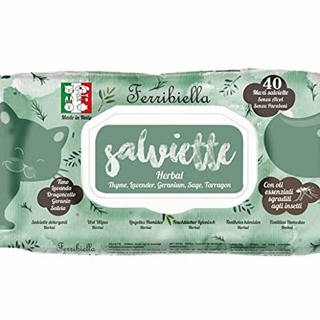 La salvietta Ferribiella è maxi e la Sua formula non contiene alcol ne parabeni, anzi la formula è ricca di componenti detergenti che neutralizzano i cattivi odori, la versione herbal è utile contro gli insetti, infatti l’associazione degli olii essenziali delle 5 piante utilizzate risulta sgradita agli insetti.