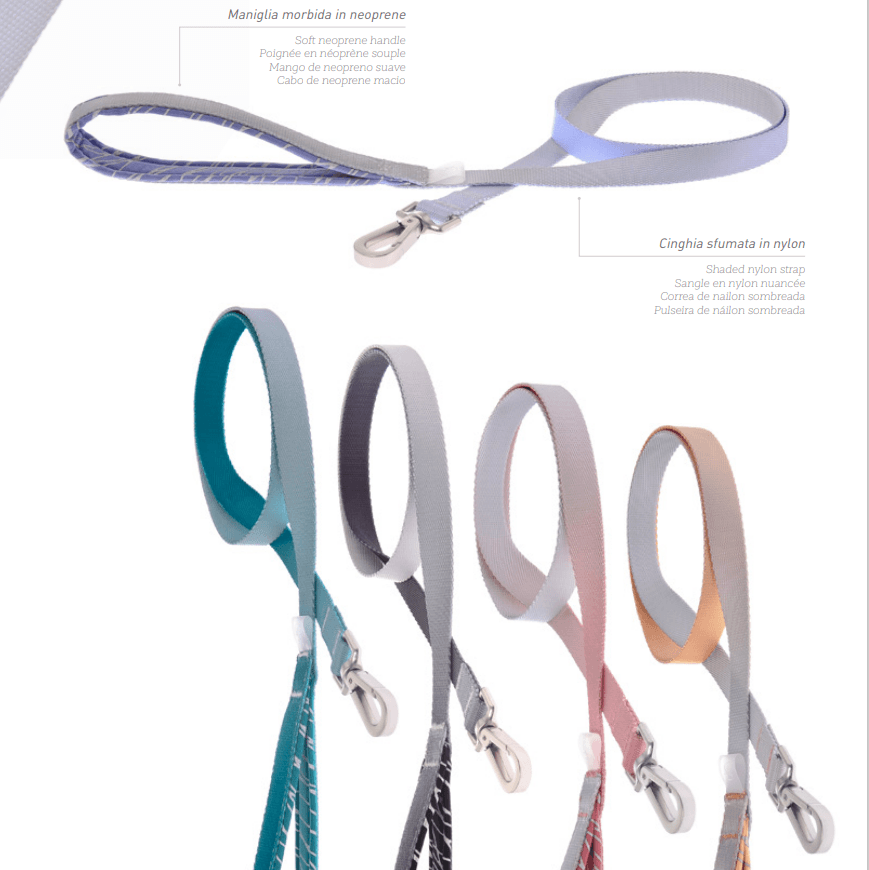 Avvolgenti pettorine e sfumati guinzagli, in cui il design, l’attenzione ai dettagli e la scelta dei materiali si traducono in un prodotto tecnico ad alte prestazioni.