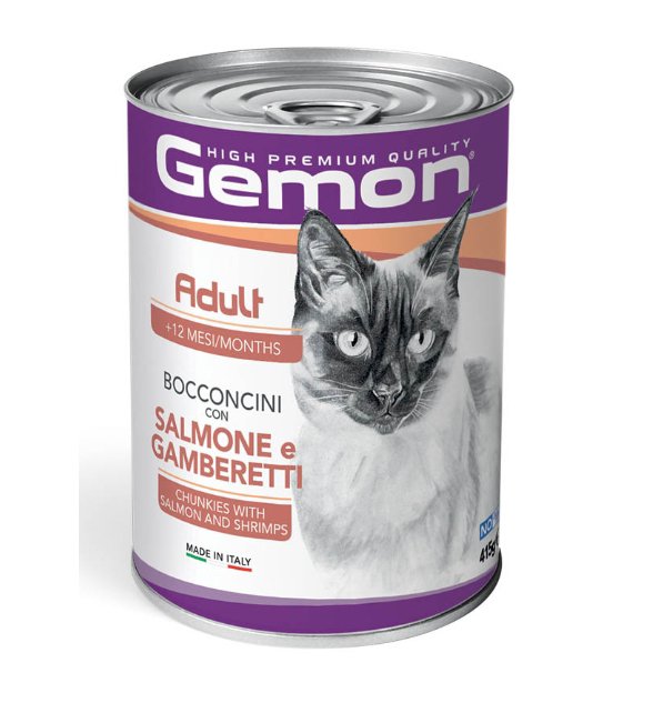 Gemon – Cat Adult Bocconcini con Salmone e Gamberetti – 415 gr