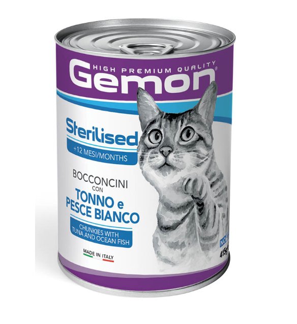 Gemon – Sterilized Cat Adult Bocconcini con Tonno e Pesce Bianco – 415 gr