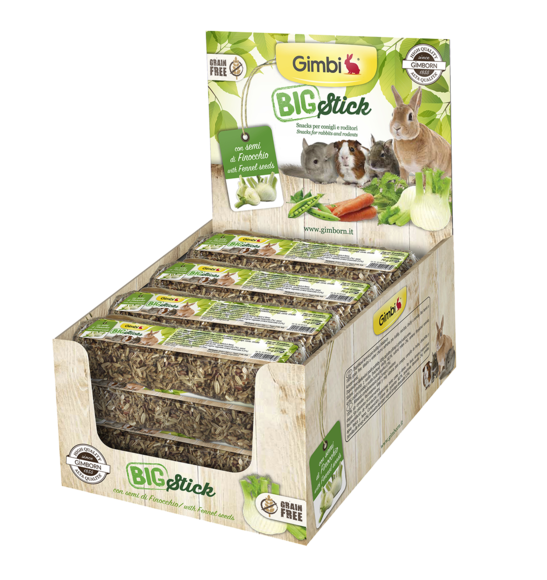Leccornie deliziose a base di vegetali, tassativamente senza cereali, fatte a forma di stick, dotate di cordino in materiale naturale. Ideali per conigli nani, cavie, cincillà e degu del Cile. Ottima appetibilità e grande attenzione nella scelta dei vegetali che hanno ottime proprietà benefiche. Il finocchio previene la formazione di gas intestinali, la camomilla ha un’azione leggermente sedativa che riduce l’incidenza di fenomi spasmolitici, il mirtillo svolge un’azione benefica a livello delle pareti venose e del mantello. L’ortica, presente in tutte e tre le referenze svolge un’azione benefica sul transito intestinale, diuretica- detossicante e antidiarroica. Ottimo l’apporto di proteine nobili fornito dai piselli.