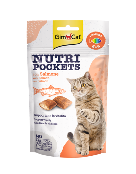 GimCat Nutri Pockets sono bocconcini croccanti con un delizioso ripieno. La taurina è un elemento essenziale per i gatti. Il loro organismo non è in grado di produrre taurina a sufficienza. Perciò bisogna somministrarla attraverso il cibo. La taurina è importante per la conservazione della vista e per sostenere la funzione cardiaca.