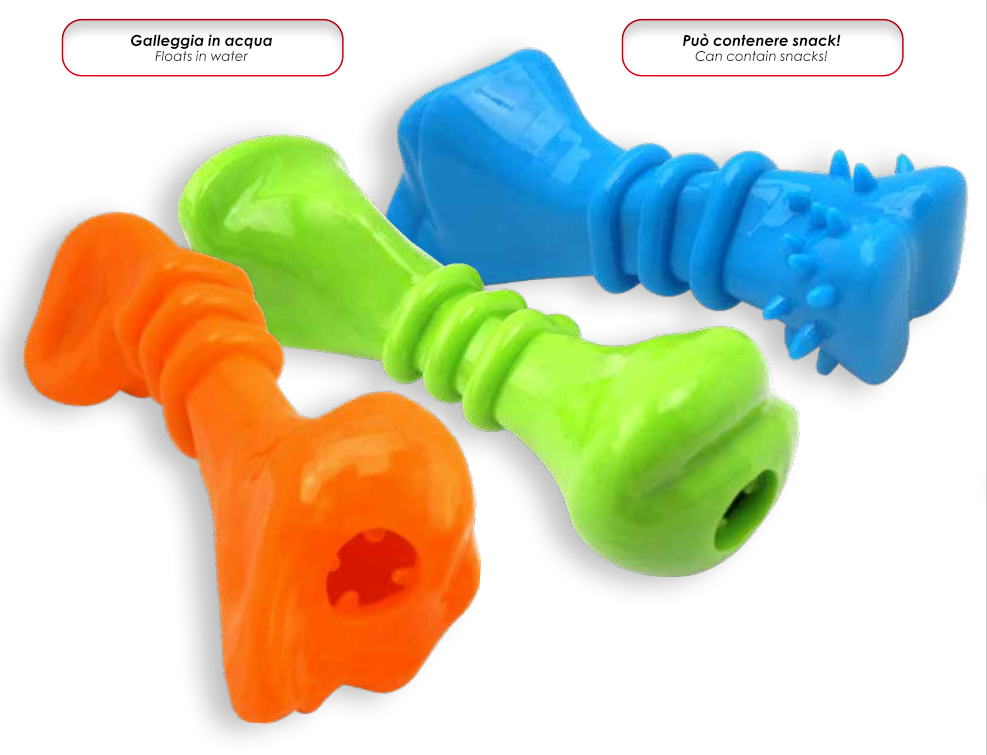 Sono riempibili con snack, mentalmente stimolanti e favoriscono il massaggio gengivale.