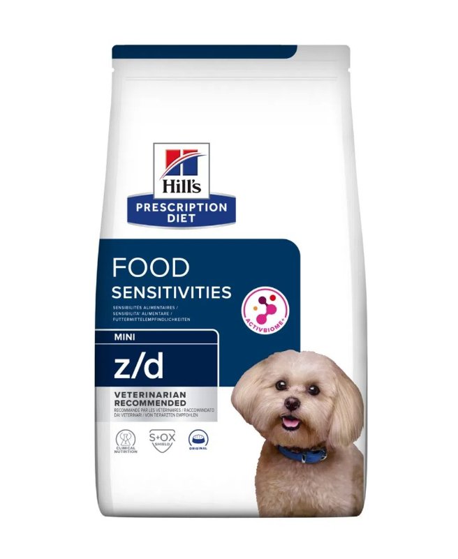 Le sensibilità e le intolleranze alimentari sono problemi potenzialmente gravi che possono provocare irritazioni della pelle, del pelo e delle orecchie o persino disturbi gastrointestinali. I cani che hanno reazioni avverse al cibo dovute a un’allergia alimentare (tipicamente a una proteina nel cibo) o un’intolleranza traggono beneficio da un alimento progettato per le sensibilità alimentari. I nutrizionisti e i veterinari di Hill’s hanno sviluppato la nutrizione clinica Prescription Diet z/d Mini appositamente formulata con crocchette più piccole adatte ai cani di piccola taglia per ridurre i segni cutanei e gastrointestinali causati dalle intolleranze alimentari. Difatti z/d è un alimento clinicamente testato per aiutare a evitare reazioni avverse al cibo.