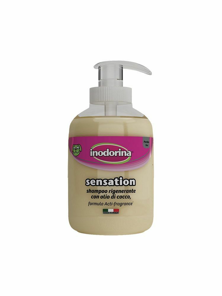 Inodorina Sensation è disponibile in 6 fragranze adatte per ogni tipologia di cute e manto. Non contengono parabeni. Formula Acti-Fragrance.