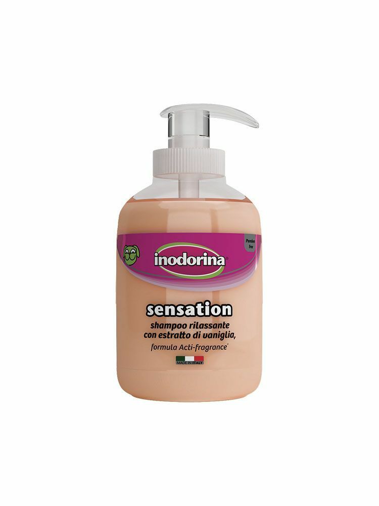 Inodorina Sensation è disponibile in 6 fragranze adatte per ogni tipologia di cute e manto. Non contengono parabeni. Formula Acti-Fragrance.