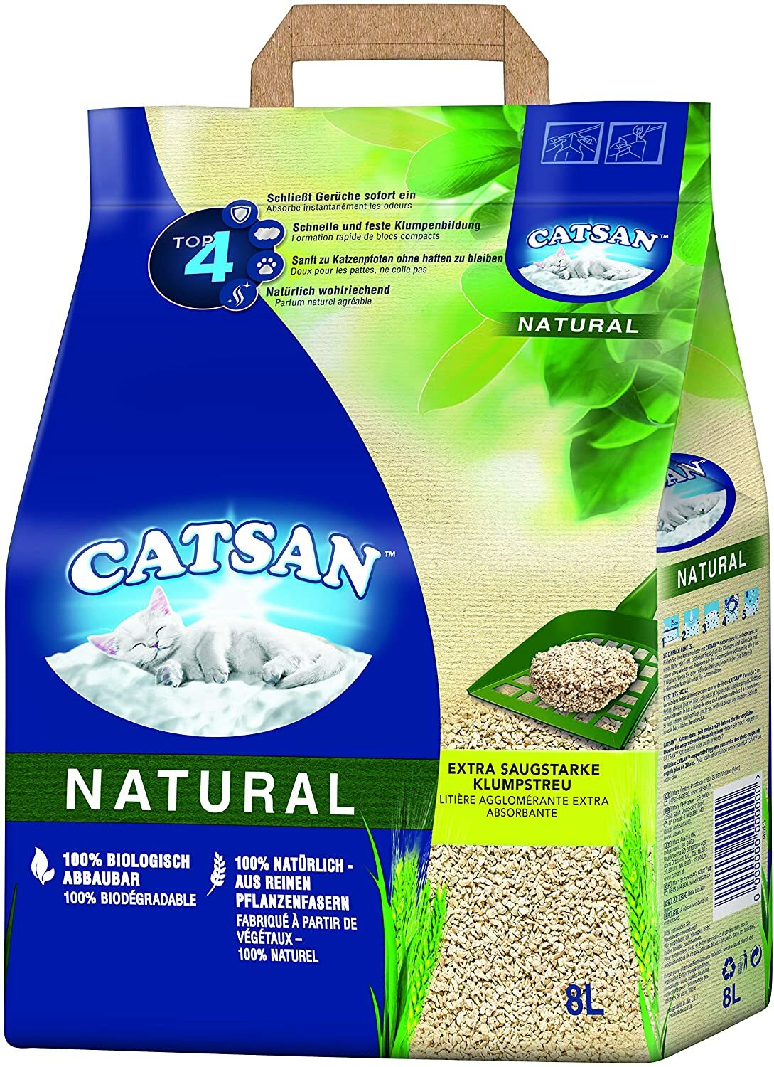 Catsan, lettiera naturale per gatti realizzata in frumento. 100% naturale – lettiera in fibre vegetali pure. 100% biodegradabile.