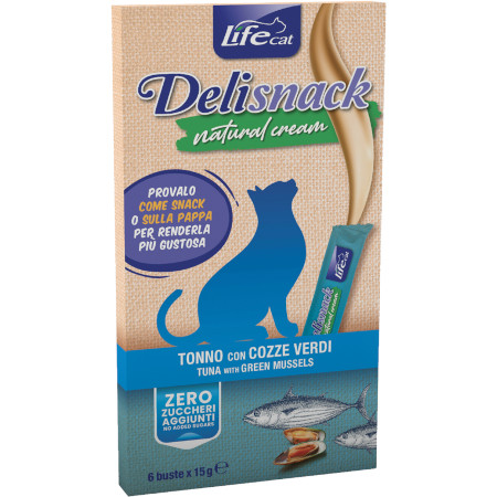 Life Cat Deli Snack Natural Cream al Tonno con Cozze Verdi – 6X15 gr