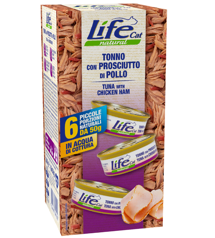 Life Cat Multipack 6 x 50 gr – Tonno con Prosciutto di Pollo