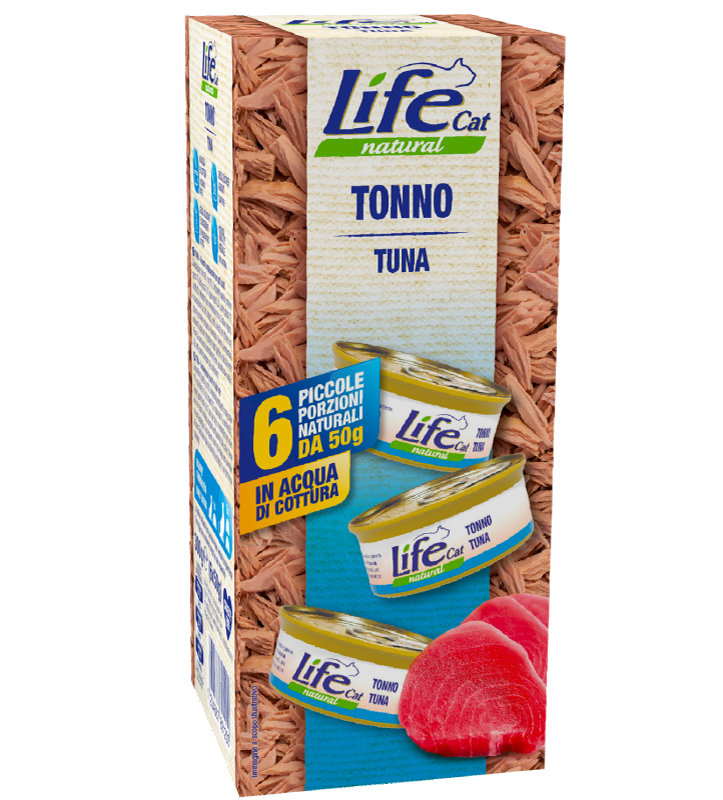 Tonno 60%, prosciutto di pollo 4%, riso 2%