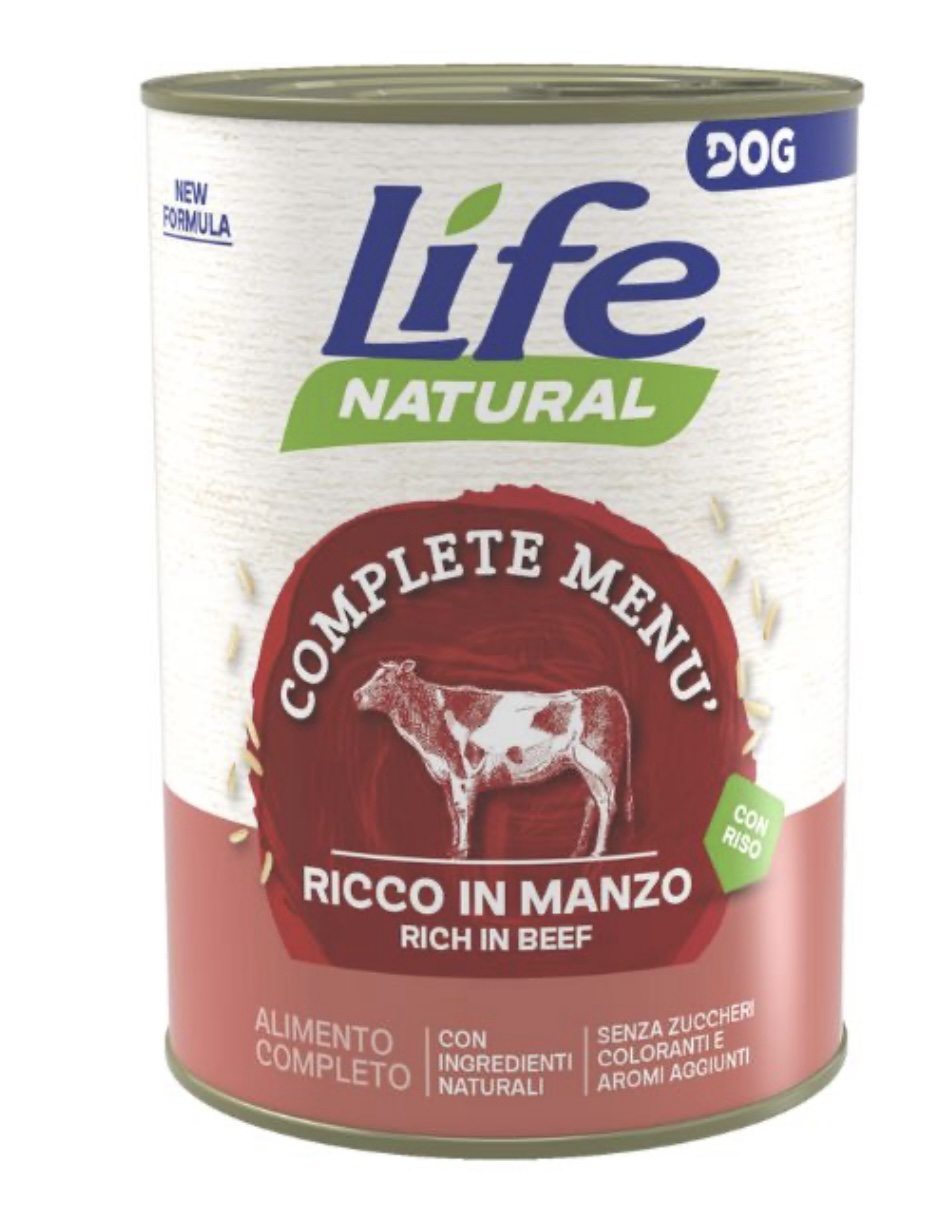 Life Dog Natural – Complete Menu’ – ricco di Manzo a Pezzettoni – 400 gr