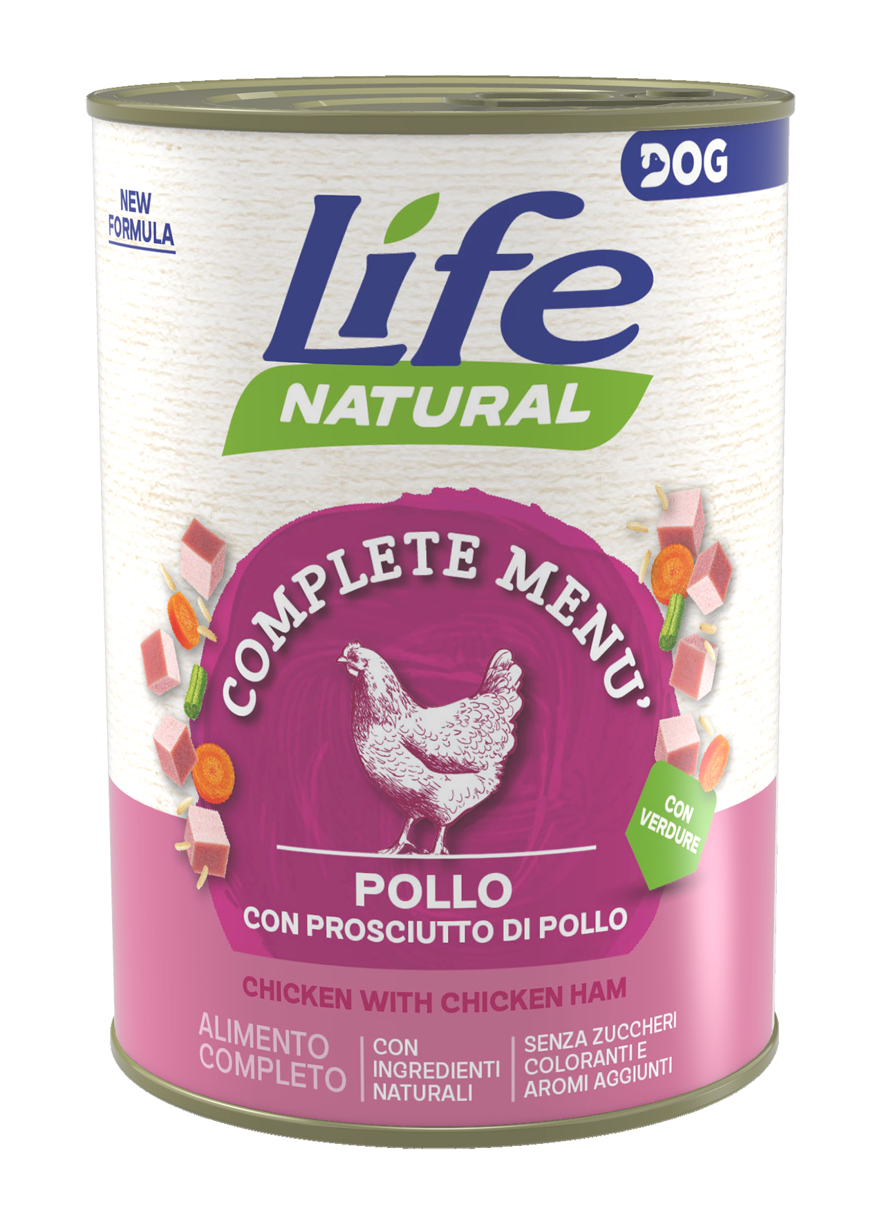 Life Dog Natural – Complete Menu’ – Con Pollo e prosciutto di pollo – 400 gr