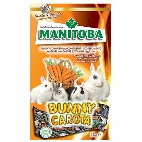 Bunny Carota Manitoba è un mangime specifico per coniglietti, perfettamente bilanciato e arricchito con carote, vitamine e minerali, che può essere somministrato sia a conigli in fase di accrescimento e sia a conigli adulti.