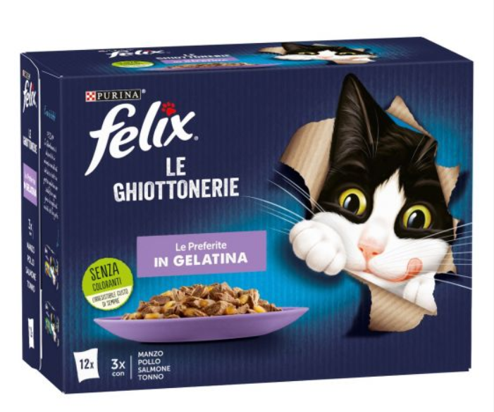 Purina Felix Le Ghiottonerie Le Preferite in gelatina – Manzo, Pollo, Salmone e Tonno – Confezione Multipack 12 pz