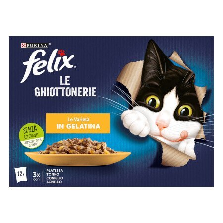 Purina Felix Le Ghiottonerie Le Varietà in Gelatina -Platessa, Tonno, Coniglio e Agnello – Confezione Multipack 12 pz