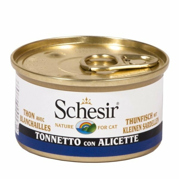 Somministrare fino a 2 lattine al giorno, in associazione con alimenti umidi completi e/o croccantini Schesir.