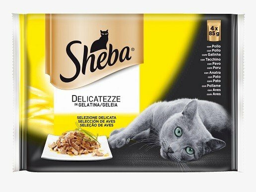 Sheba – Delicatezze in Gelatina Selezione Delicata ( Anatra, Pollo, Pollame, Tacchino) – 4 x 85 gr