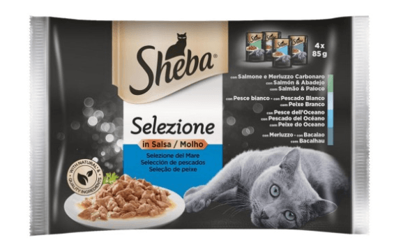 Sheba – Delicatezze in Salsa Selezione del Mare ( Salmone e Merluzzo Carbonaro, Pesce Bianco, Pesce dell’ Oceano, Merluzzo) – 4 x 85 gr