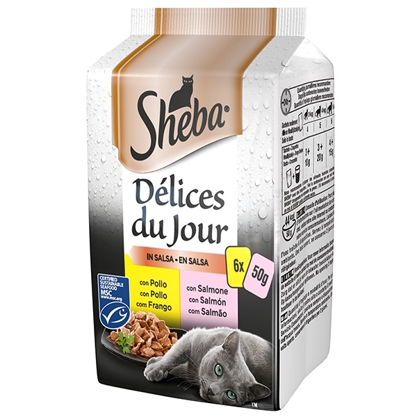 Sheba – Délices Du Jour con Pollo e Salmone in Salsa – 6×50 gr