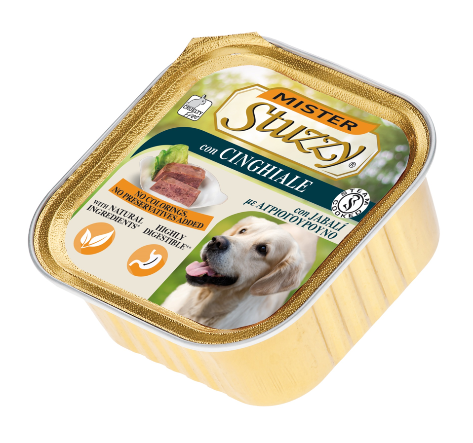 Patè con veri pezzi, cotto a vapore senza aggiunta di coloranti e conservanti.