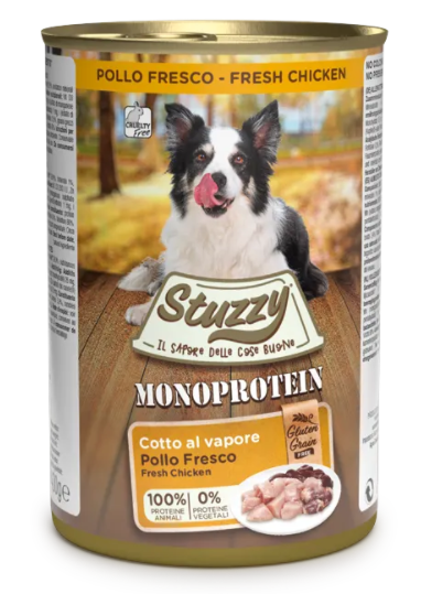 Stuzzy Monoprotein Pollo è l’alimento completo per cani che stai cercando per nutrire il tuo campione con tanto gusto e una sola fonte di proteine di origine animale. Ed è cotto al vapore, per conservare intatta tutta la sua genuinità.