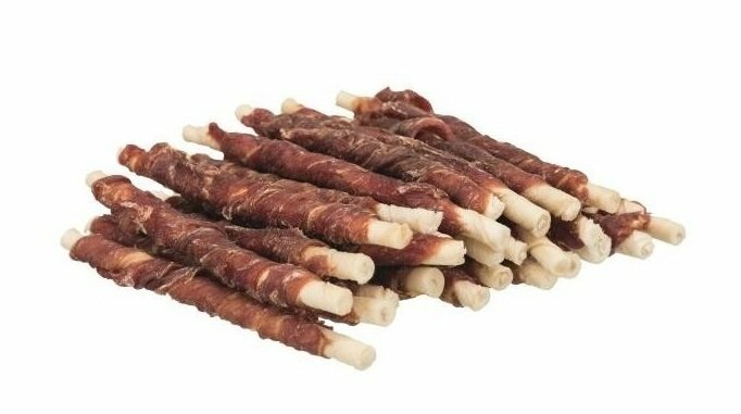 Composizione: pelle di bovino, carne d’anatra (30 %), amido di mais, glicerina, sorbitolo, minerali.