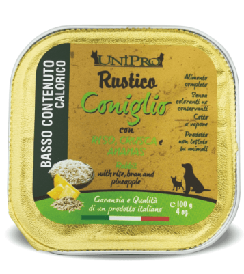 Unipro – Rustico Coniglio con Riso, Crusca e Ananas – 100 gr